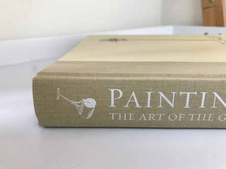 Painting Paradise was published by Royal Collection Trust, project managed by me and printed and bound in Slovenia by Gorenjski Tisk. It uses real cloth for the three-quarter bind and the text, image and logo on the spine are all foil blocked with a white foil. The image of the roller was drawn by the designer taking a motif from the book. The designer had the foiling process in mind and ensured that the details weren’t too fine so as not to fill in. The highlights on the flower on the front of the book were also picked out with white foil.